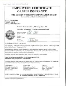 Alaska Certificate of Self-Insurance